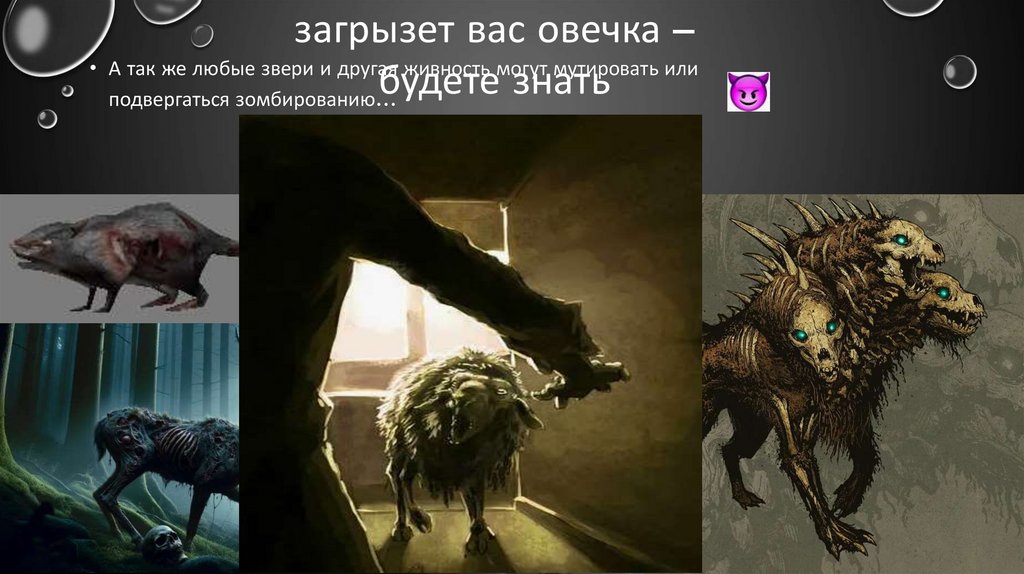 загрызет вас овечка –• А так же любые звери и другая живность могут мутировать или