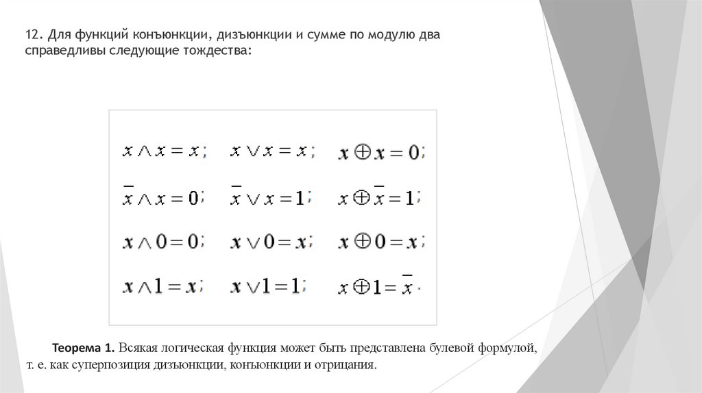 Булевы функции и алгебра логики. Двойственность булевых функций