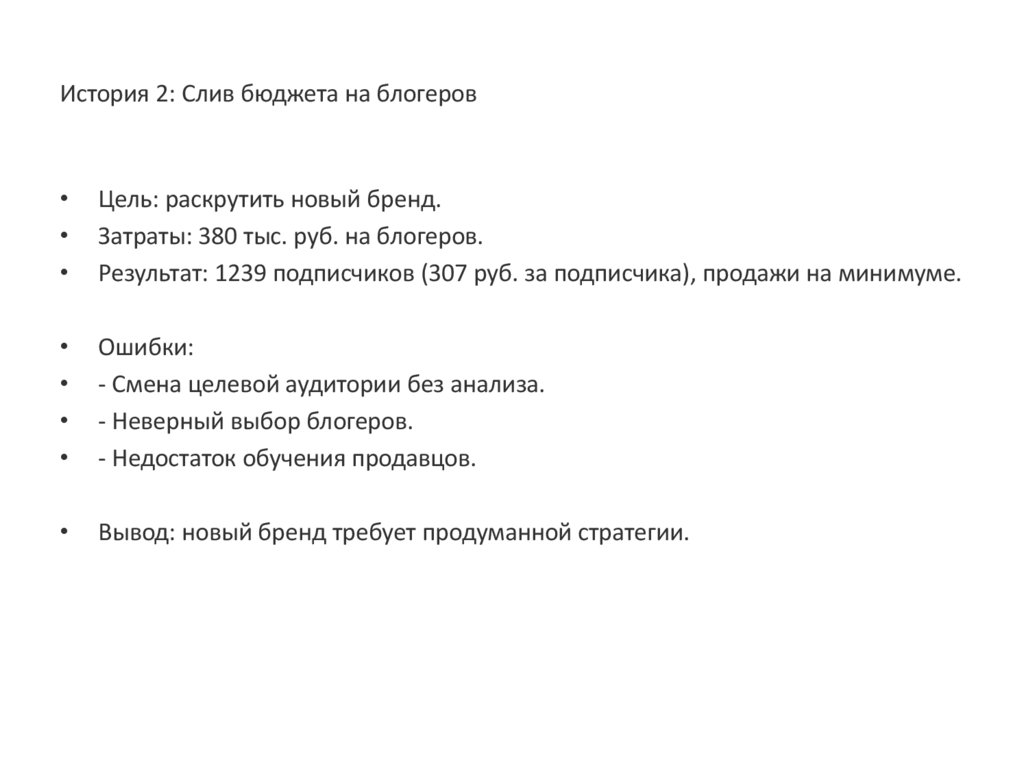 История 2: Слив бюджета на блогеровЦель: раскрутить новый бренд.