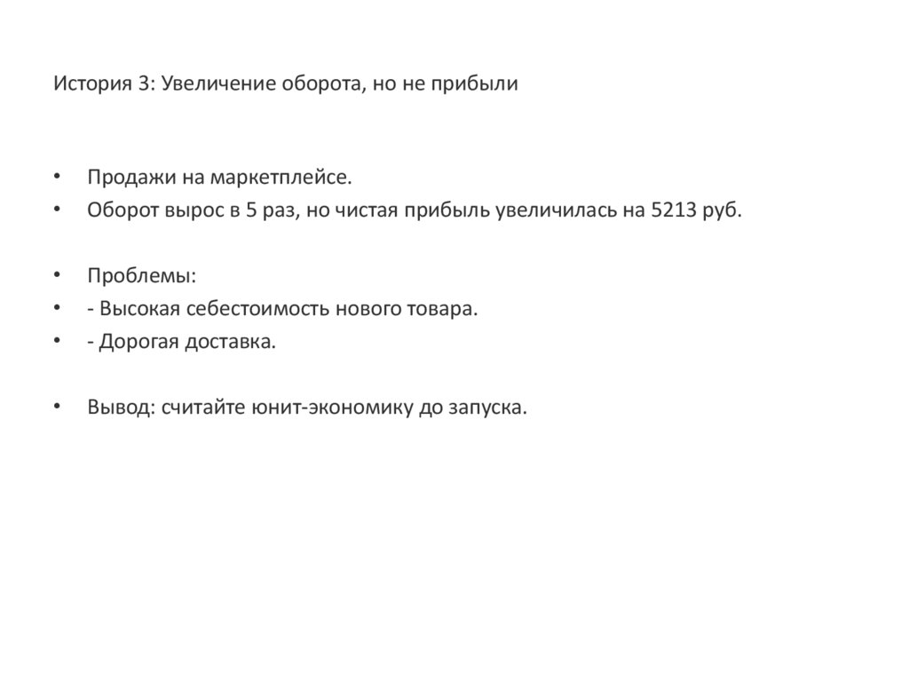 История 3: Увеличение оборота, но не прибылиПродажи на маркетплейсе.