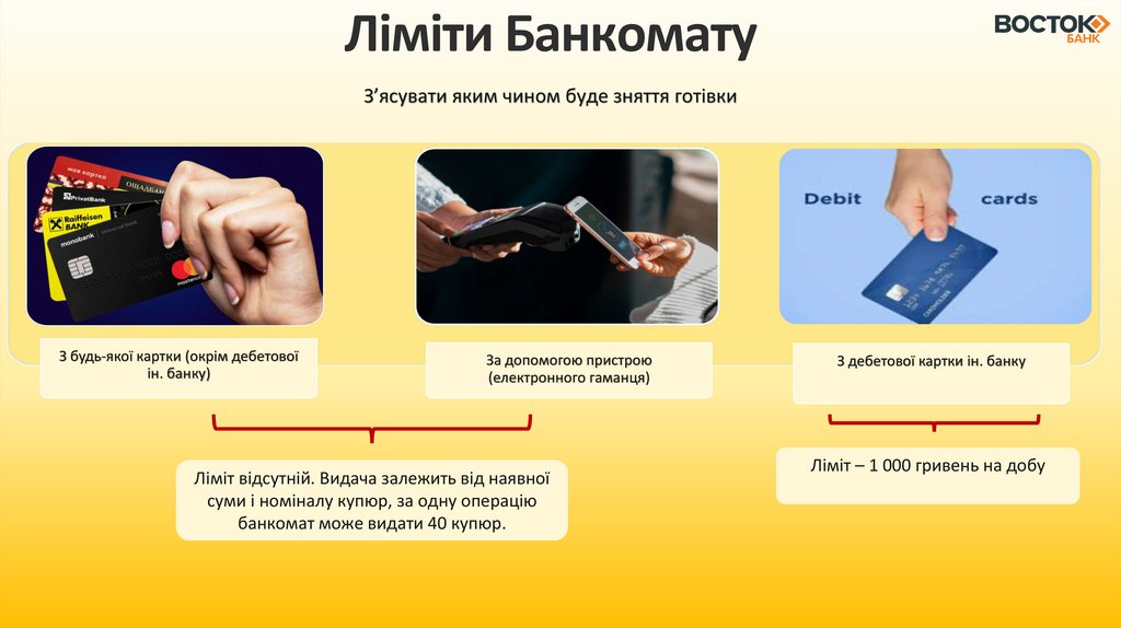 Ліміти БанкоматуЗ’ясувати яким чином буде зняття готівки