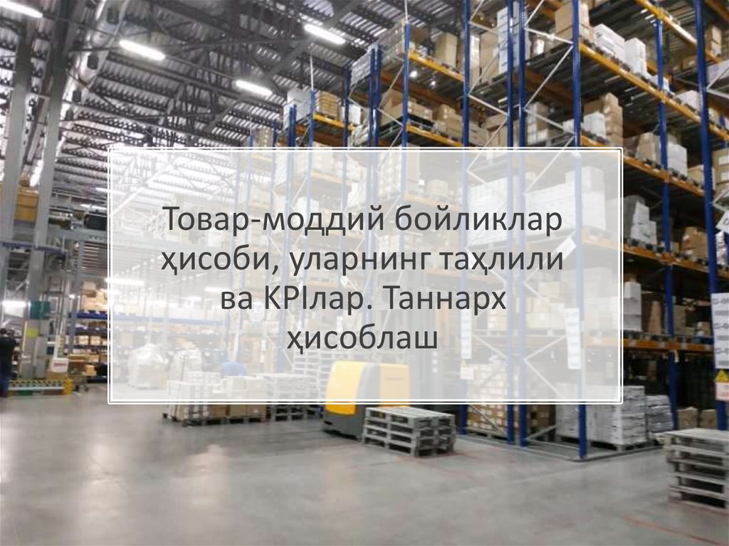 1. Товар-моддий бойликлар ҳисоби, уларнинг таҳлили ва KPIлар. Таннарх ҳисоблаш
