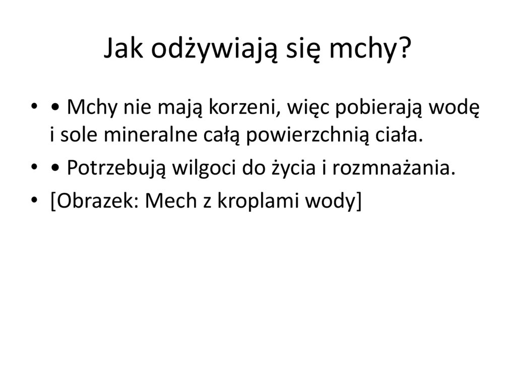 Jak odżywiają się mchy?• • Mchy nie mają korzeni, więc pobierają wodę