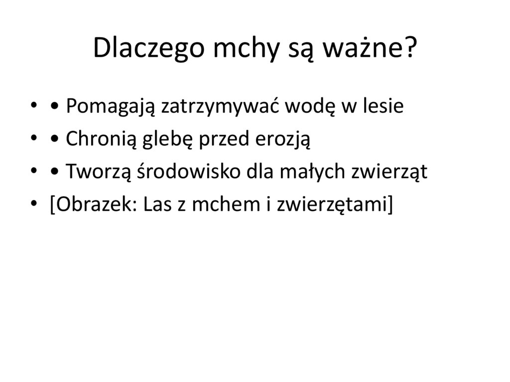 Dlaczego mchy są ważne?• • Pomagają zatrzymywać wodę w lesie
