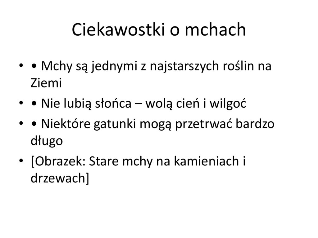 Ciekawostki o mchach• • Mchy są jednymi z najstarszych roślin na