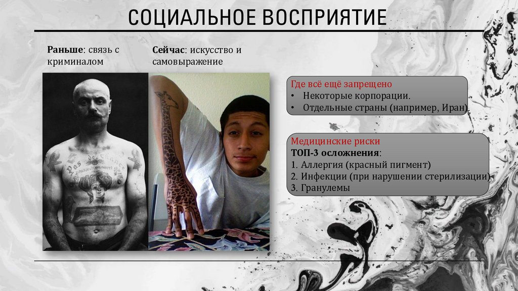 Что такое татуировка?Постоянный рисунок на коже, созданный путём