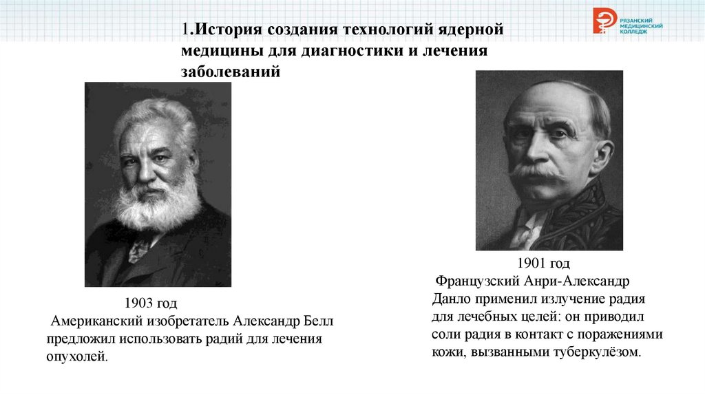 1.История создания технологий ядерноймедицины для диагностики и лечения
