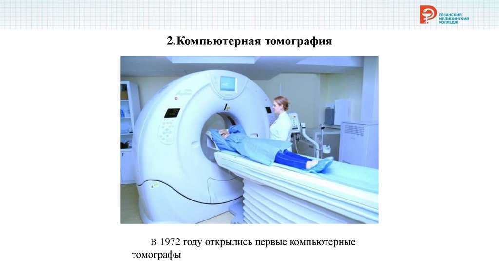2.Компьютерная томографияВ 1972 году открылись первые компьютерные