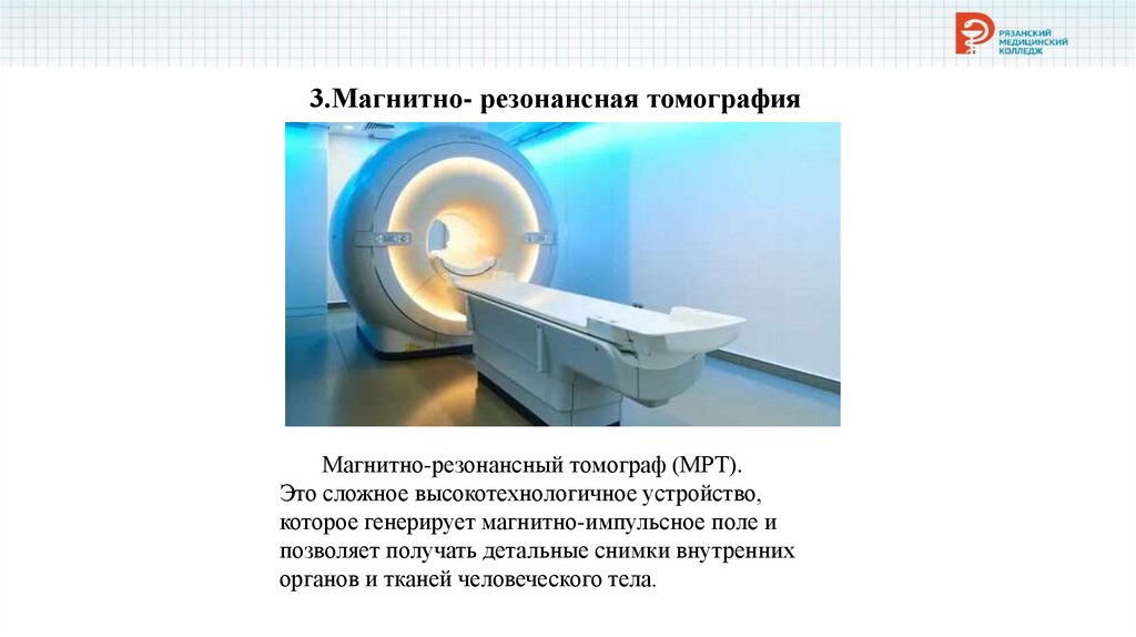 3.Магнитно- резонансная томографияМагнитно-резонансный томограф (МРТ).