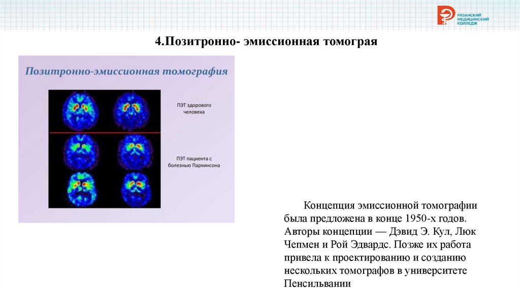 4.Позитронно- эмиссионная томограяКонцепция эмиссионной томографии
