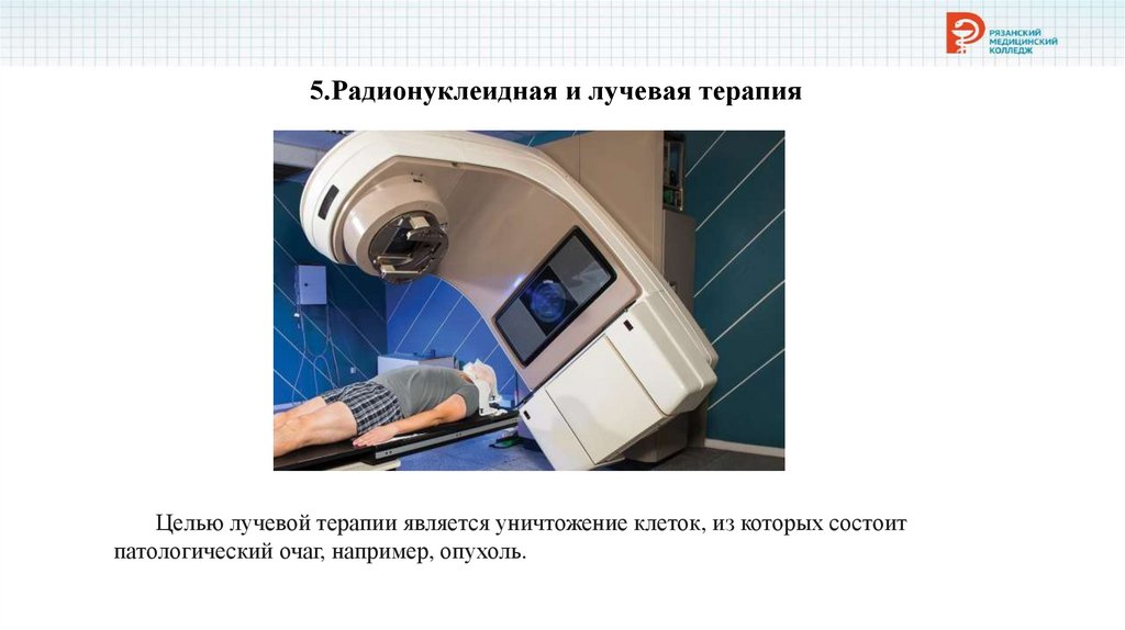 5.Радионуклеидная и лучевая терапияЦелью лучевой терапии является уничтожение клеток, из которых состоит