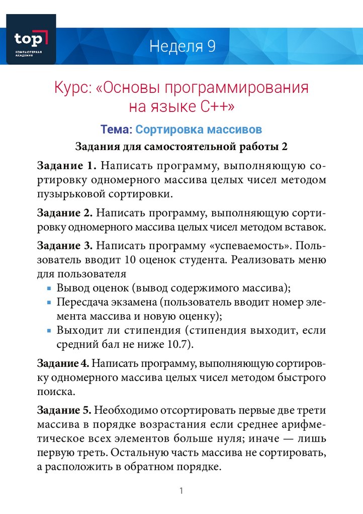 Задание 1. Написать программу, выполняющую сортировку одномерного массива целых чисел методом