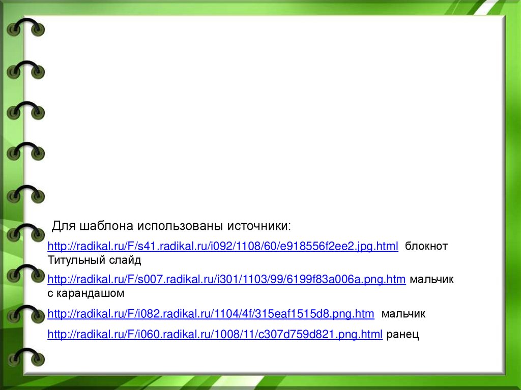 Для шаблона использованы источники:http://radikal.ru/F/s41.radikal.ru/i092/1108/60/e918556f2ee2.jpg.html блокнот