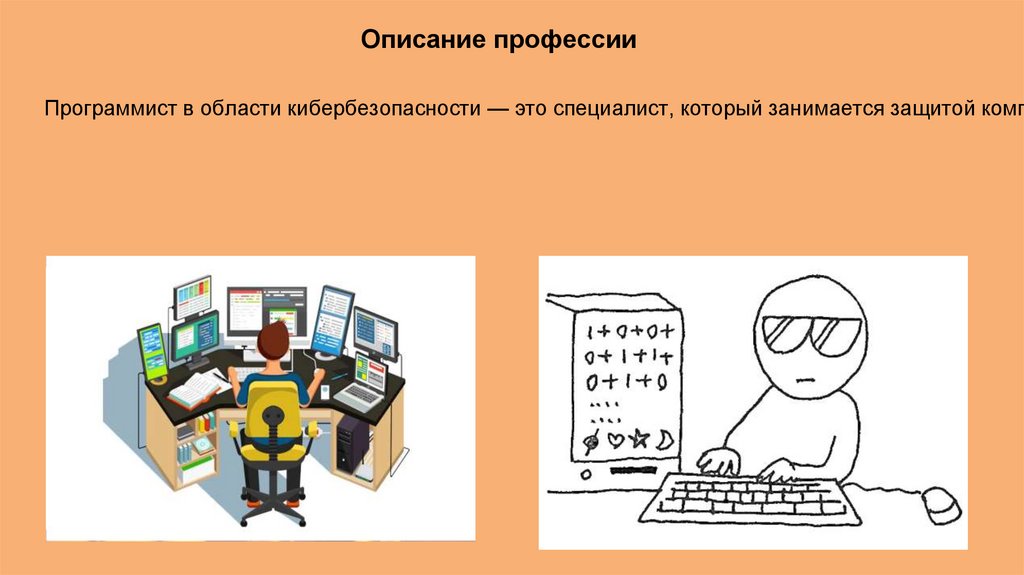 Описание профессииПрограммист в области кибербезопасности — это специалист, который занимается защитой комп