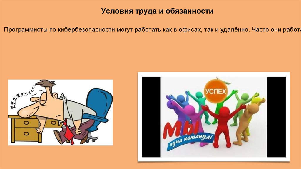Условия труда и обязанностиПрограммисты по кибербезопасности могут работать как в офисах, так и удалённо. Часто они работа