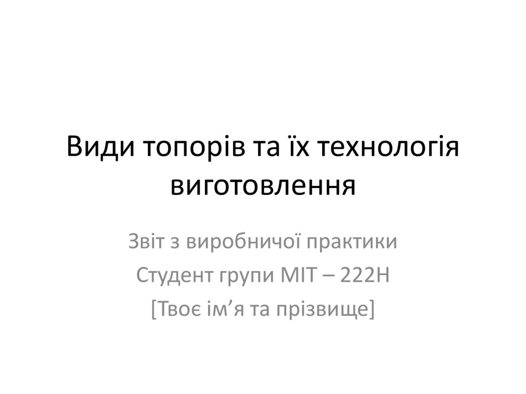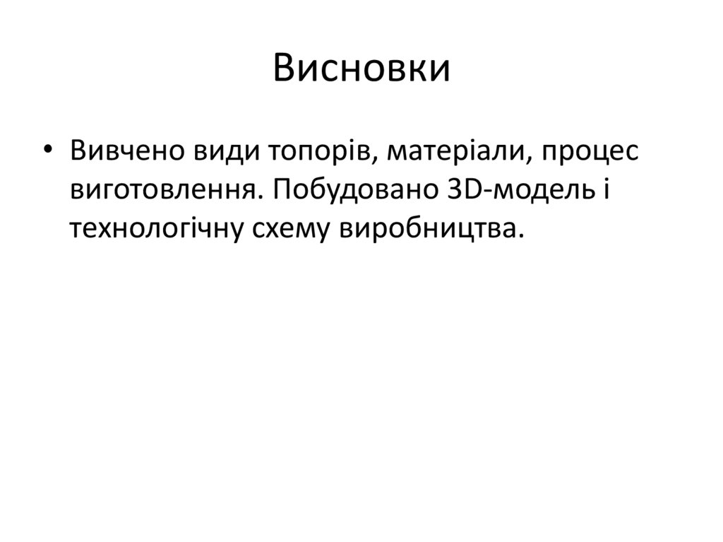Висновки• Вивчено види топорів, матеріали, процес