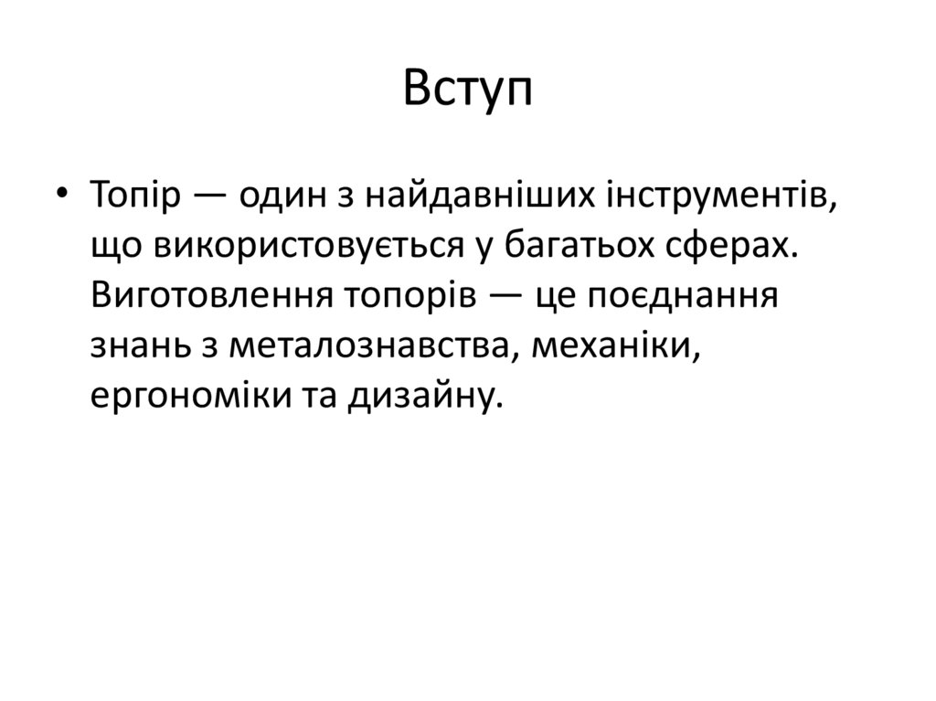 Вступ• Топір — один з найдавніших інструментів,