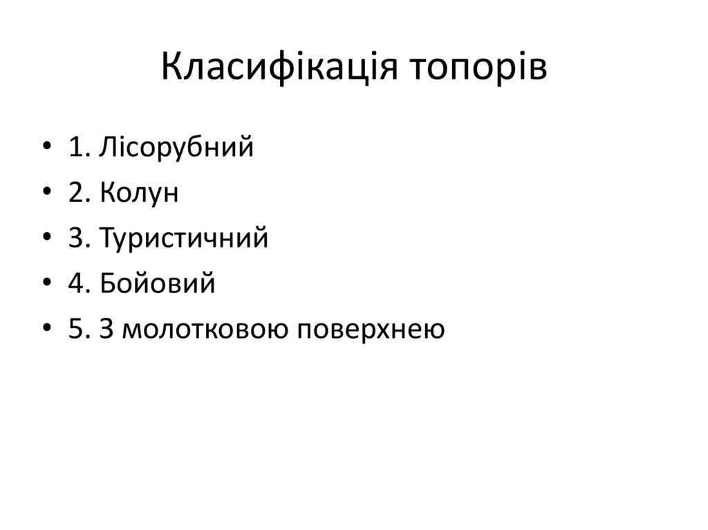 Класифікація топорів• 1. Лісорубний