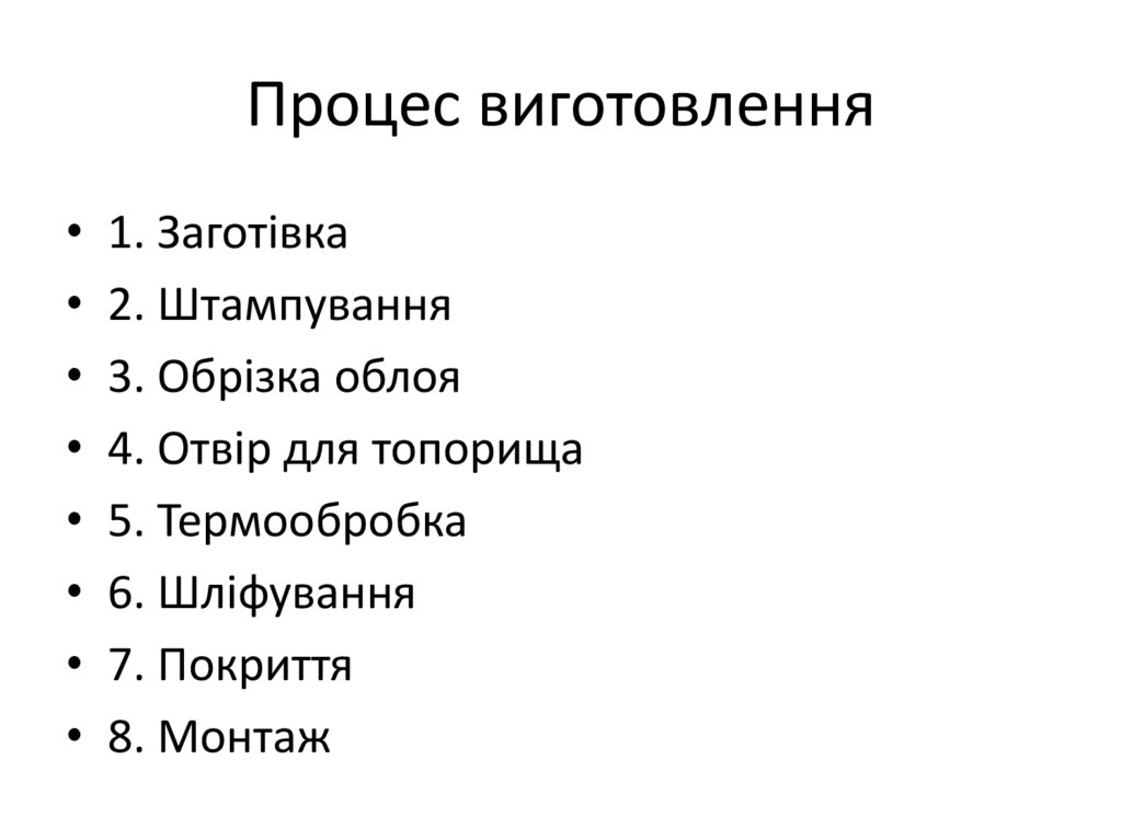 Процес виготовлення• 1. Заготівка