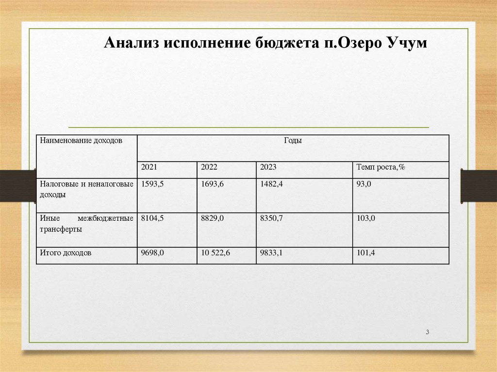 3. Анализ исполнение бюджета п.Озеро Учум