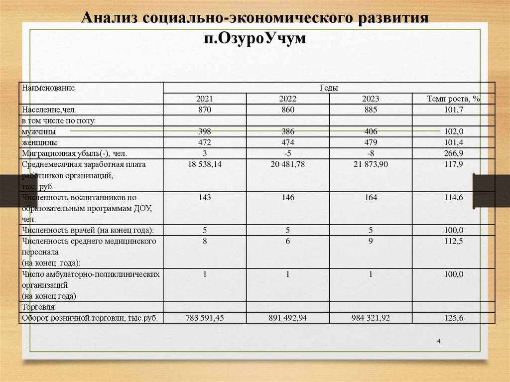 Анализ социально-экономического развитияп.ОзуроУчум