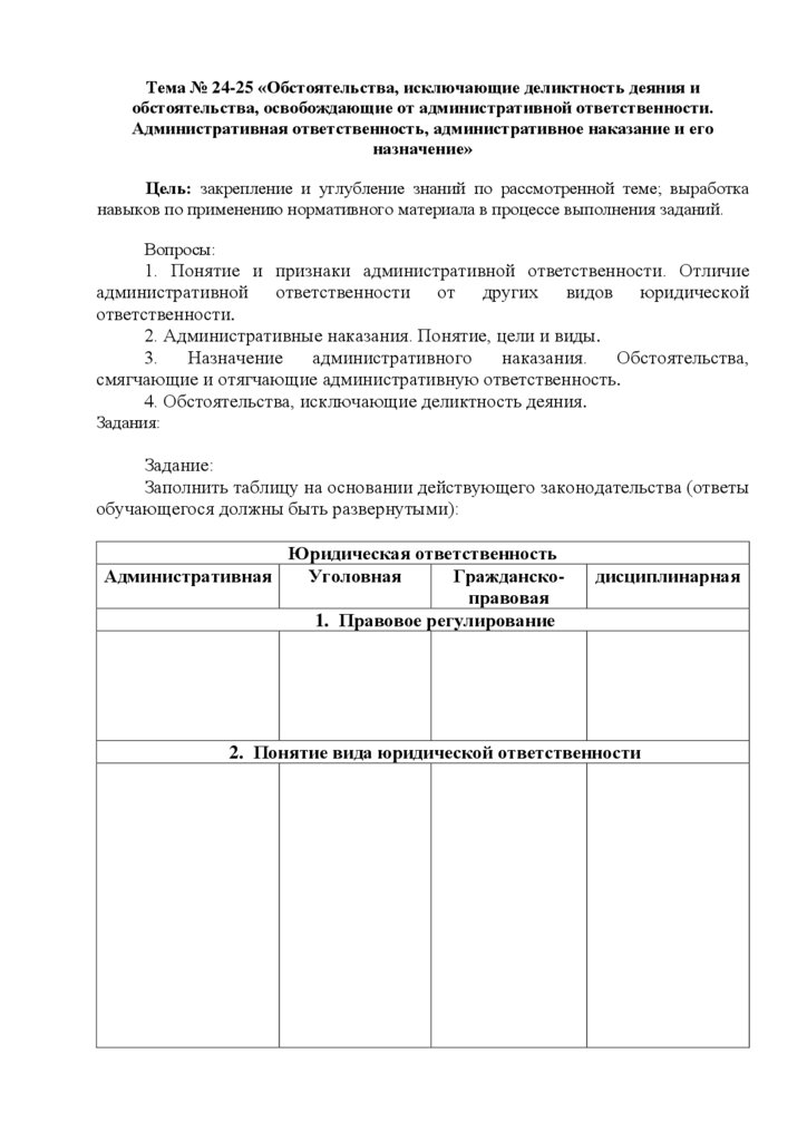 Тема № 24-25 «Обстоятельства, исключающие деликтность деяния иобстоятельства, освобождающие от административной ответственности.