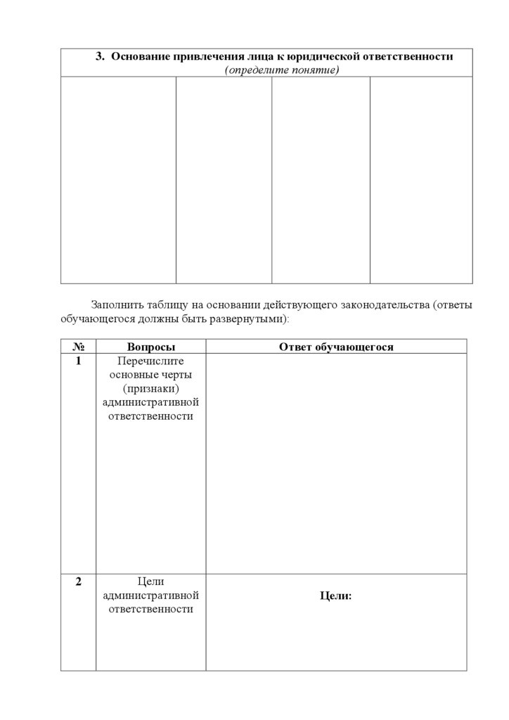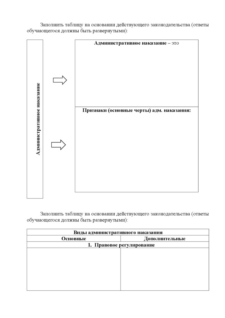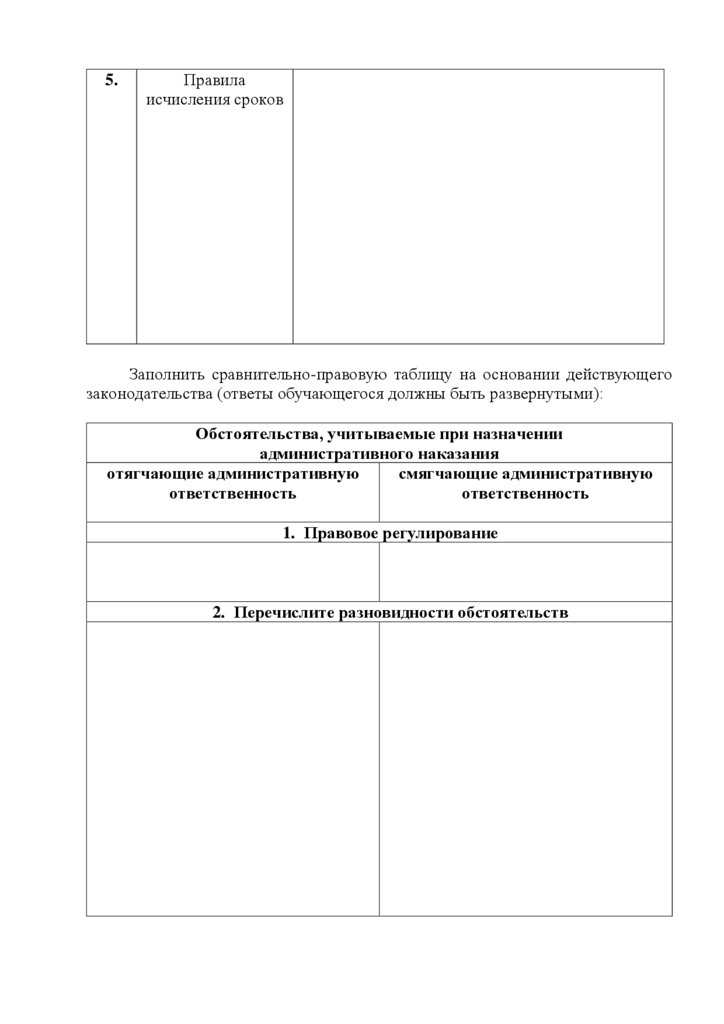 Заполнить таблицу на основании действующего законодательства (ответыобучающегося должны быть развернутыми):