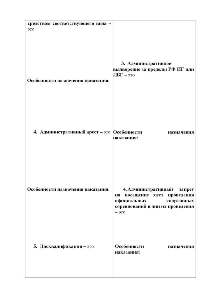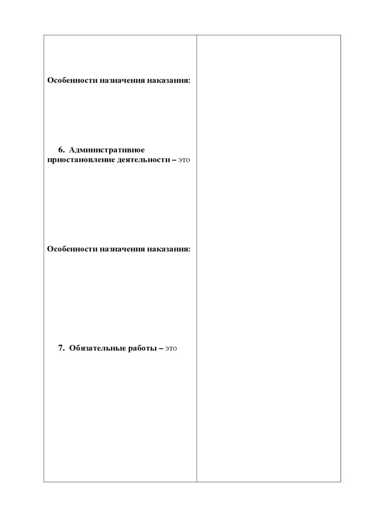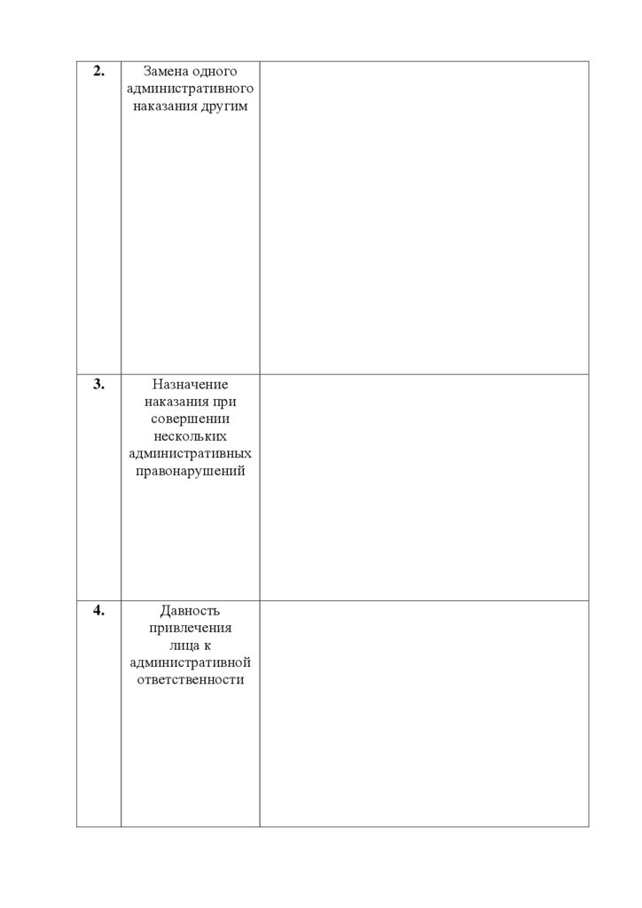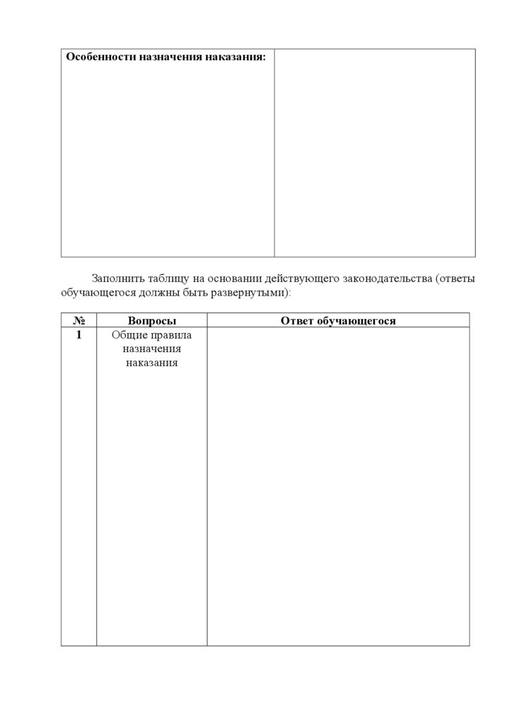 Особенности назначения наказания:Заполнить таблицу на основании действующего законодательства (ответы
