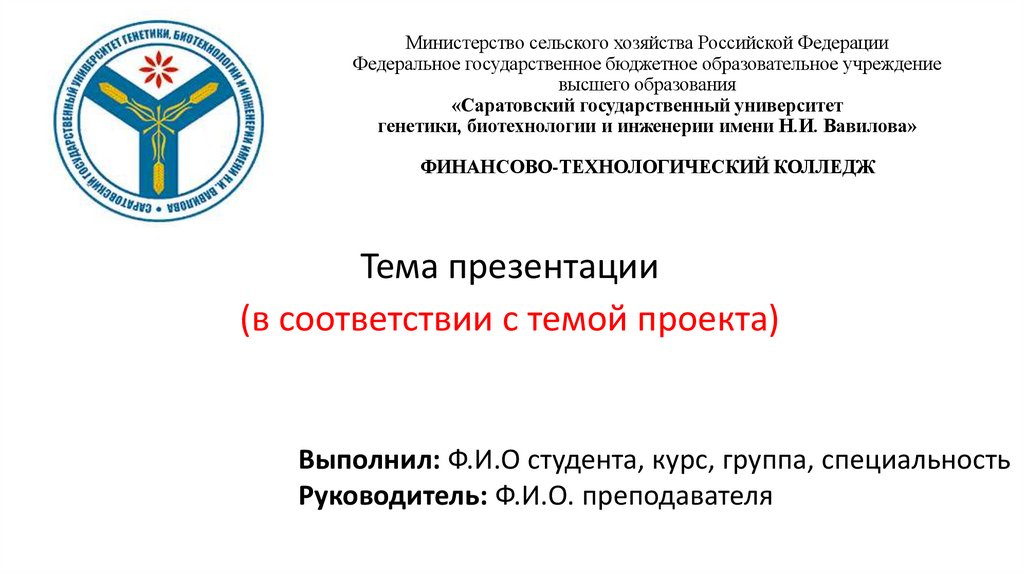 1. Министерство сельского хозяйства Российской Федерации Федеральное государственное бюджетное образовательное учреждение высшего