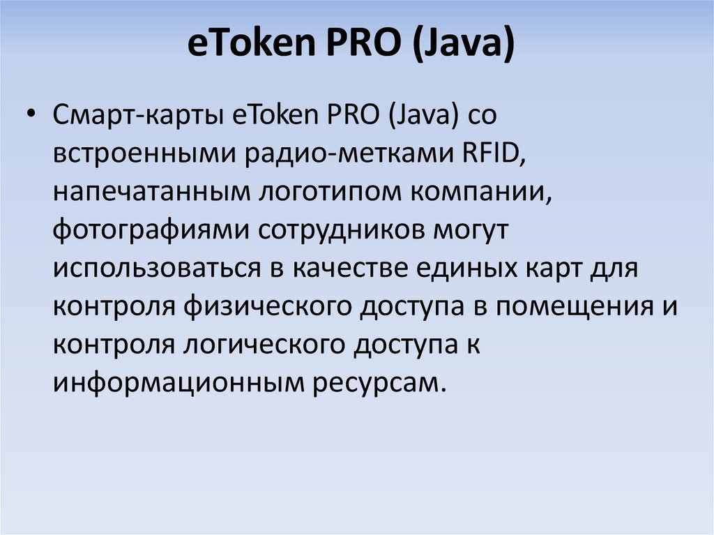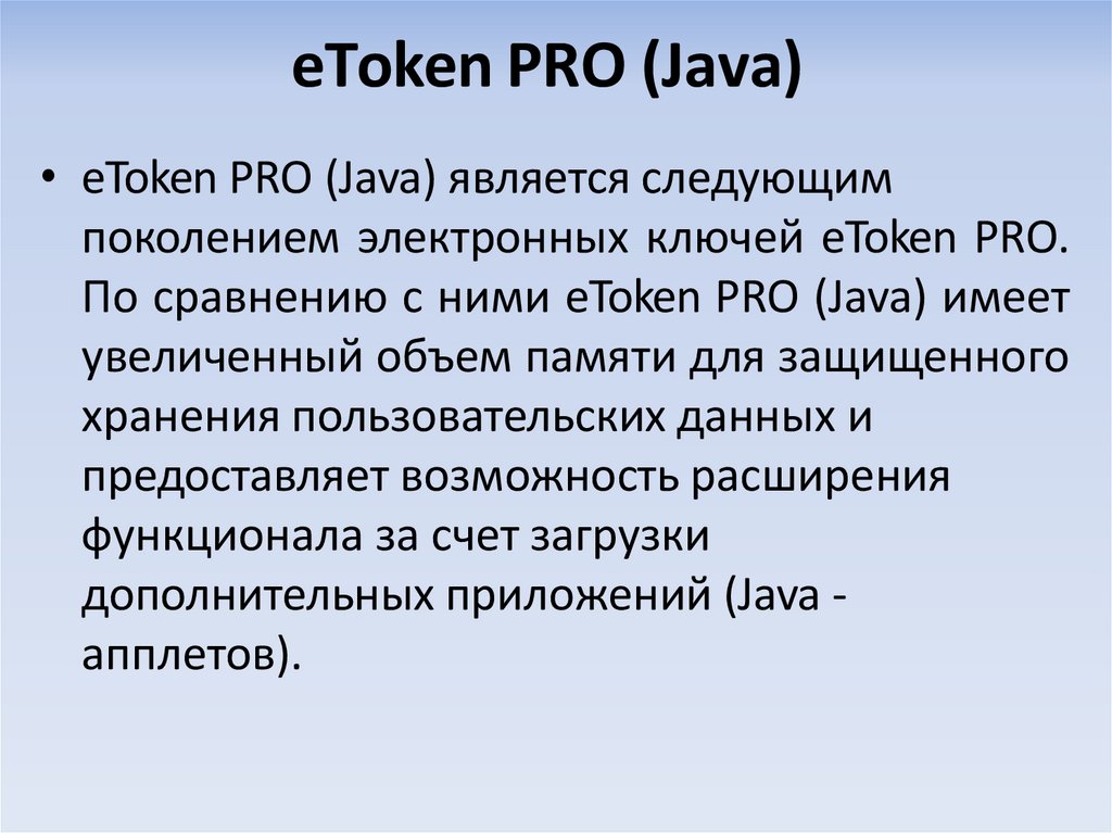 • eToken PRO (Java) является следующимпоколением электронных ключей eToken PRO.