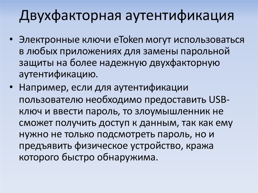 пользователю необходимо предоставить USBключ и ввести пароль, то злоумышленник не