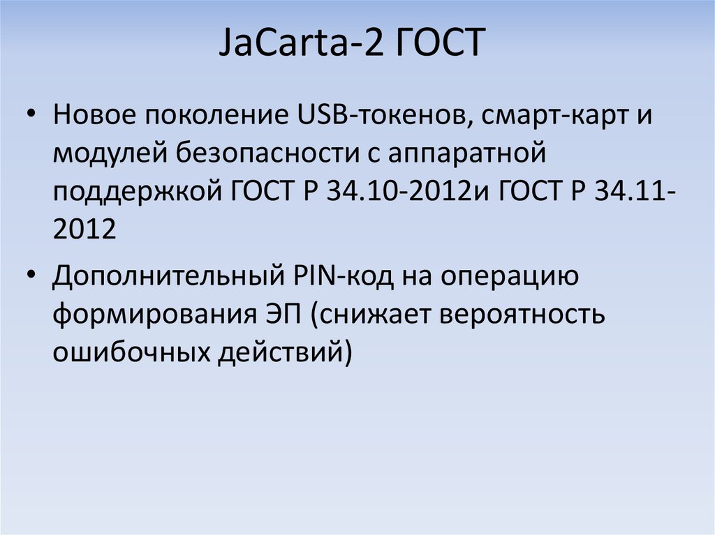 • В новом устройстве JaCarta-2 ГОСТ