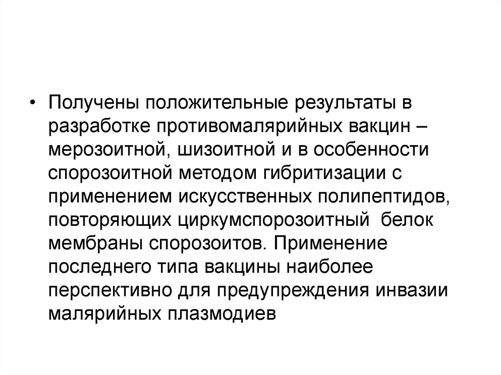 • Получены положительные результаты вразработке противомалярийных вакцин –