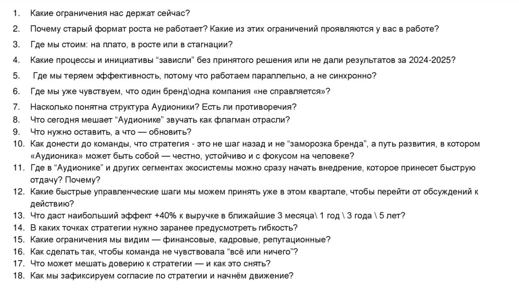 10. Как донести до команды, что стратегия - это не шаг назад и не “заморозка бренда”, а путь развития, в котором