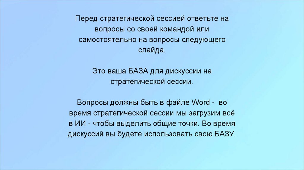 Перед стратегической сессией ответьте навопросы со своей командой или