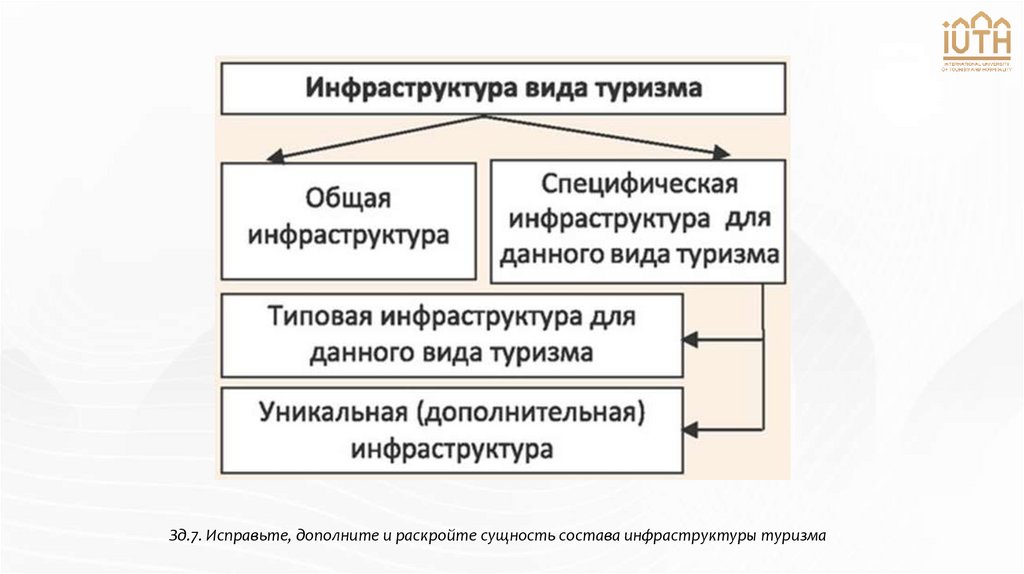 Зд.7. Исправьте, дополните и раскройте сущность состава инфраструктуры туризма12.