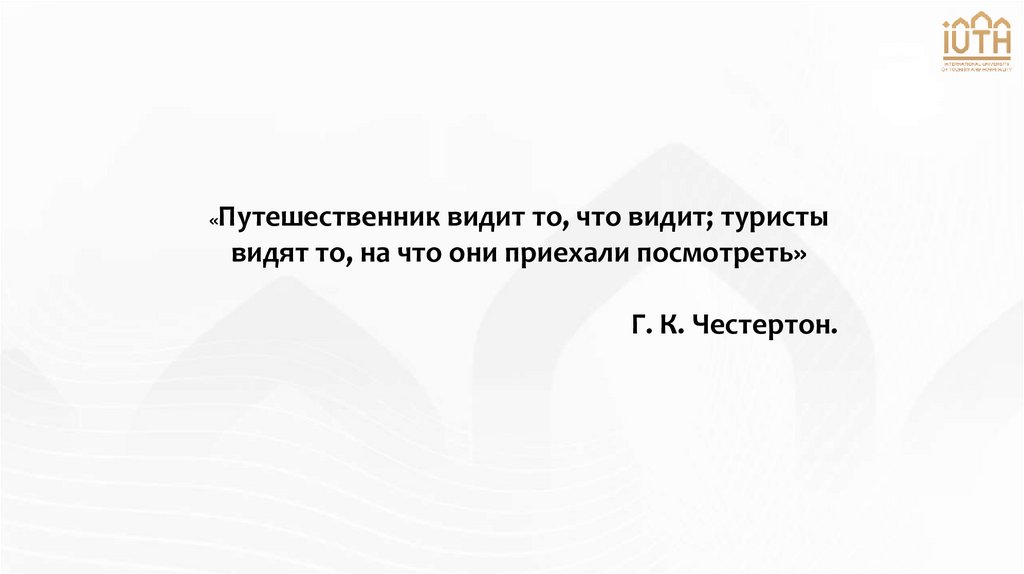«Путешественник видит то, что видит; туристывидят то, на что они приехали посмотреть»