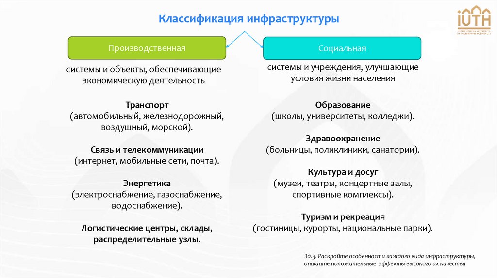 Зд.3. Раскройте особенности каждого вида инфраструктуры,