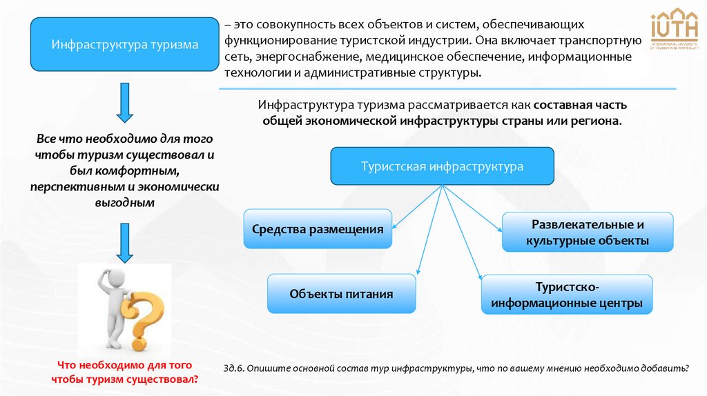 Зд.6. Опишите основной состав тур инфраструктуры, что по вашему мнению необходимо добавить?