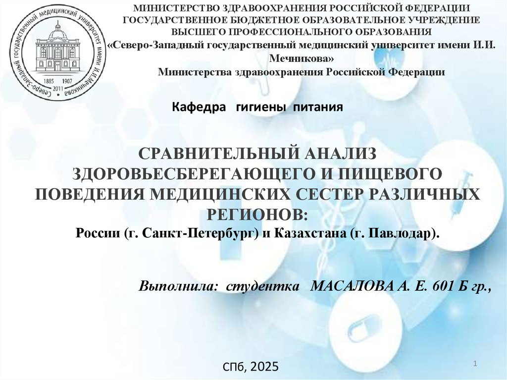 Сравнительный анализ здоровьесберегающего и пищевого поведения медицинских сестер различных регионов