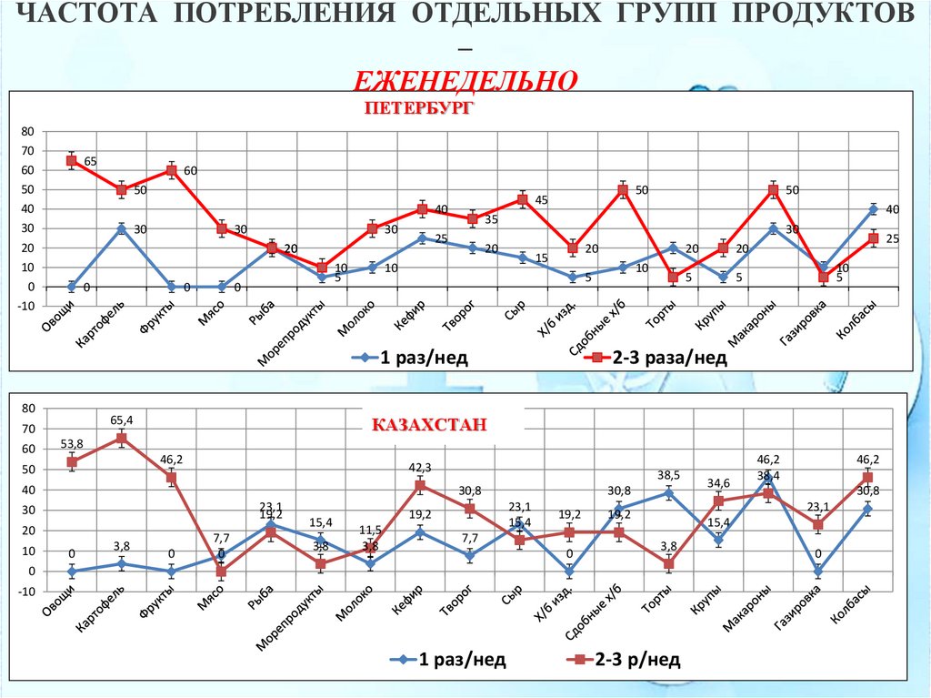 недостаточное потребление рыбы, морепродуктов и у медсестер Казахстана - молока,