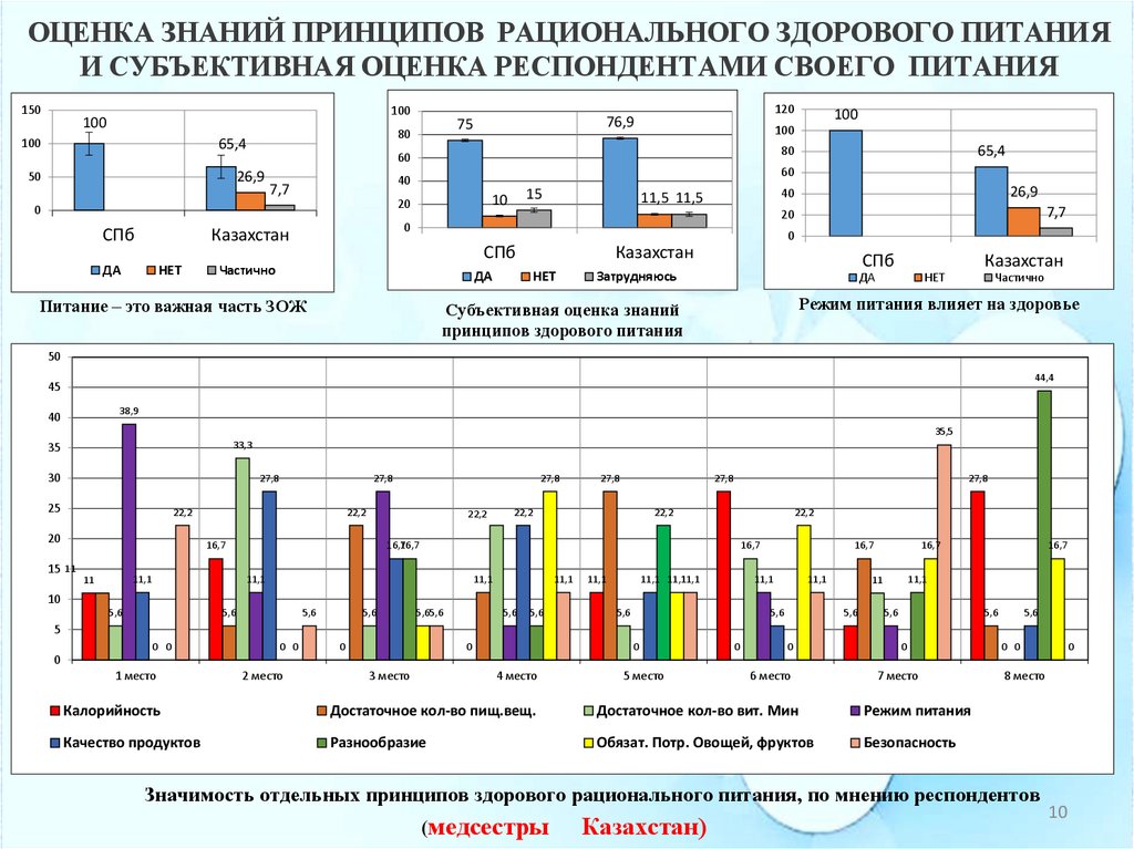 здорового питания, однако фактически знания респондентов, особенно медсестер