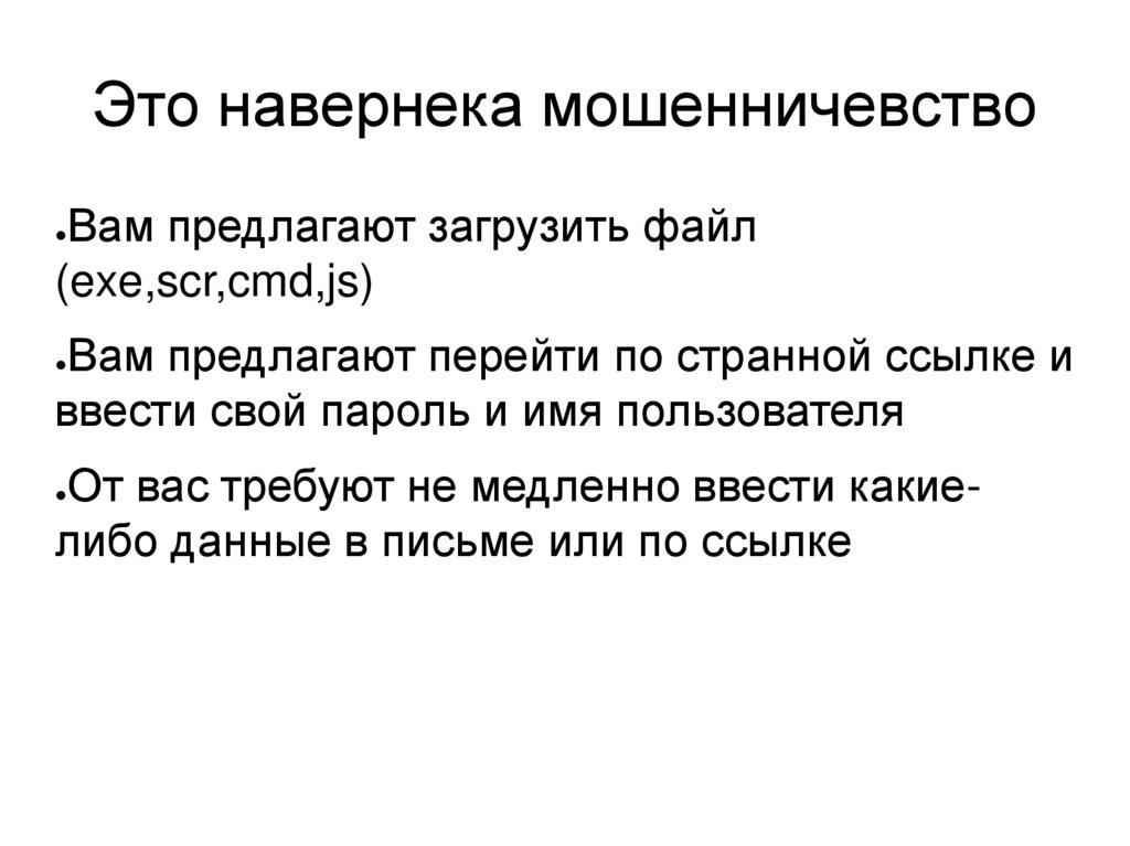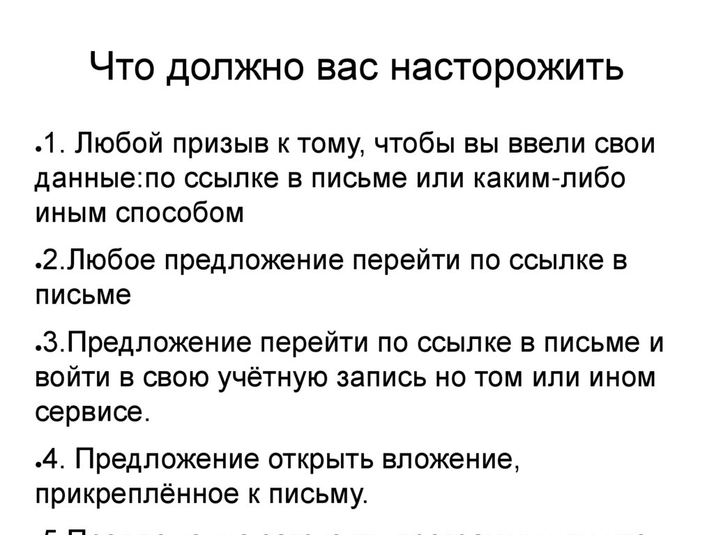 Что должно вас насторожить1. Любой призыв к тому, чтобы вы ввели свои