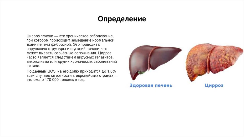 ОпределениеЦирроз печени — это хроническое заболевание,