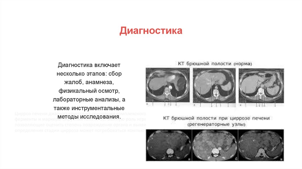 определения стадии цирроза может потребоваться компьютерная томография или магнитно-резонансная томография.