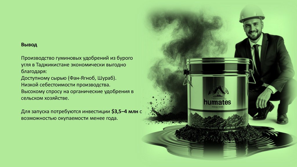 ВыводПроизводство гуминовых удобрений из бурого