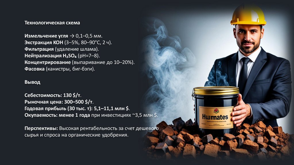 Производство гуминовых удобрений и гуматов калия из бурого угляТехнология производства