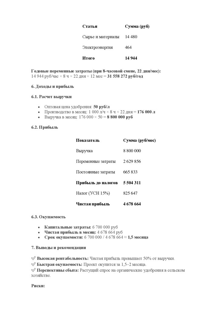 Итог: Проект экономически целесообразен и подходит для малого/среднего бизнеса.
