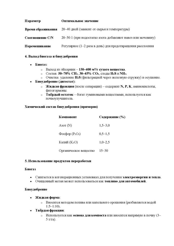 отходами (навоз, пищевые отходы, растительные остатки) для баланса C/N (20–