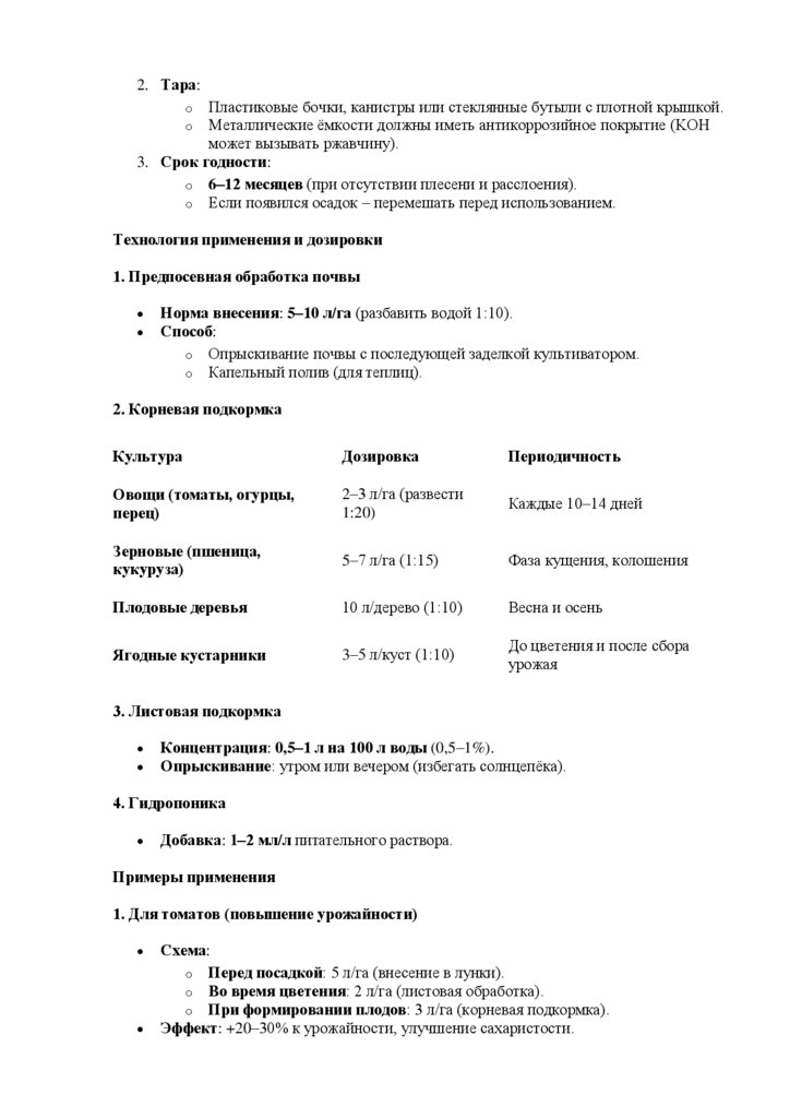 транспортировки и применения.